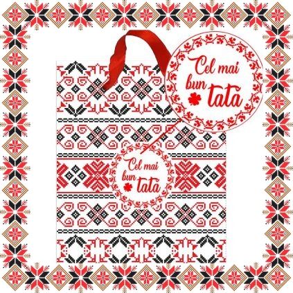 Punguta cadou de dimensiune 12x14.5x6cm cu design cu motive traditionale romanesti, trifoi cu patru foi si mesajul Cel mai bun tata! Daruieste cadoul tau complet de martisor!