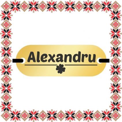 Bratara martisor personalizat prin gravarea pandantivului cu numele Alexandru si trifoi norocos cu patru foi. Pandantivul - placuta ovala aurie este realizat din otel inoxidabil, un material rezistent ce nu isi modifica culoarea si aspectul in timp iar elasticul este de culoare neagra, aspect ce face din acest martisor un accesoriu extrem de versatil, usor de asortat mai multor tinute vestimentare. Dimensiunea bratarii se poate regla prin cele doua noduri culisante, fiind potrivita pentru diferite circumferinte ale mainii. Gravam cu bucurie martisoare special create pentru oamenii dragi din viata ta!