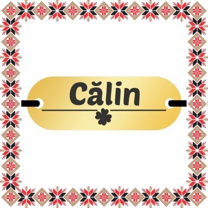 Bratara martisor personalizat prin gravarea pandantivului cu numele Calin si trifoi norocos cu patru foi. Pandantivul - placuta ovala aurie este realizata din otel inoxidabil, un material rezistent ce nu isi modifica culoarea si aspectul in timp iar elasticul este de culoare neagra, aspect ce face din acest martisor un cadou ideal ce poate fi purtat tot anul fiind un accesoriu extrem de versatil, usor de asortat mai multor tinute vestimentare. Dimensiunea bratarii se poate regla prin cele doua noduri culisante, fiind potrivita pentru diferite circumferinte ale mainii. Gravam cu bucurie martisoare special create pentru oamenii dragi din viata ta!