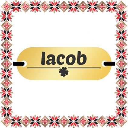 Bratara martisor personalizat prin gravarea pandantivului cu numele Iacob si trifoi norocos cu patru foi. Pandantivul - placuta ovala aurie este realizata din otel inoxidabil, un material rezistent ce nu isi modifica culoarea si aspectul in timp iar elasticul este de culoare neagra, aspect ce face din acest martisor un cadou ideal ce poate fi purtat tot anul fiind un accesoriu extrem de versatil, usor de asortat mai multor tinute vestimentare. Dimensiunea bratarii se poate regla prin cele doua noduri culisante, fiind potrivita pentru diferite circumferinte ale mainii. Gravam cu bucurie martisoare special create pentru oamenii dragi din viata ta!