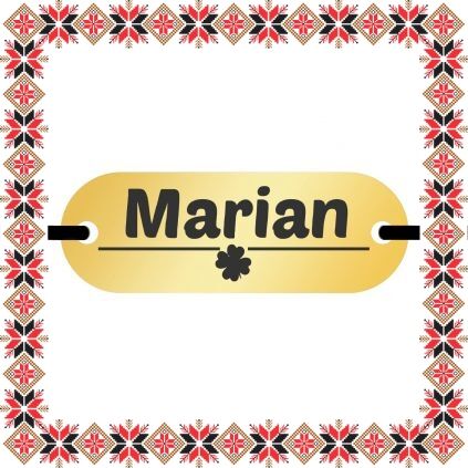 Bratara martisor personalizat prin gravarea pandantivului cu numele Marian si trifoi norocos cu patru foi. Pandantivul - placuta ovala aurie este realizat din otel inoxidabil, un material rezistent ce nu isi modifica culoarea si aspectul in timp iar elasticul este de culoare neagra, aspect ce face din acest martisor un accesoriu extrem de versatil, usor de asortat mai multor tinute vestimentare. Dimensiunea bratarii se poate regla prin cele doua noduri culisante, fiind potrivita pentru diferite circumferinte ale mainii. Gravam cu bucurie martisoare special create pentru oamenii dragi din viata ta!