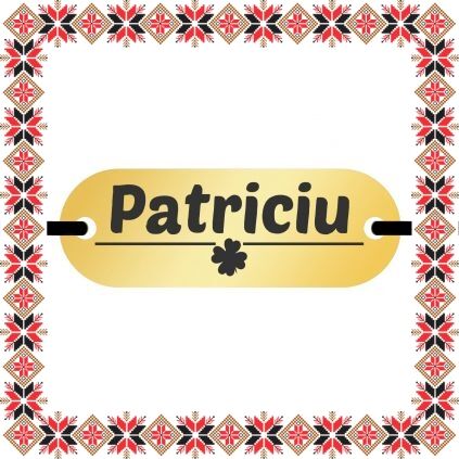 Bratara martisor personalizat prin gravarea pandantivului cu numele Patriciu si trifoi norocos cu patru foi. Pandantivul - placuta ovala aurie este realizata din otel inoxidabil, un material rezistent ce nu isi modifica culoarea si aspectul in timp iar elasticul este de culoare neagra, aspect ce face din acest martisor un cadou ideal ce poate fi purtat tot anul fiind un accesoriu extrem de versatil, usor de asortat mai multor tinute vestimentare. Dimensiunea bratarii se poate regla prin cele doua noduri culisante, fiind potrivita pentru diferite circumferinte ale mainii. Gravam cu bucurie martisoare special create pentru oamenii dragi din viata ta!
