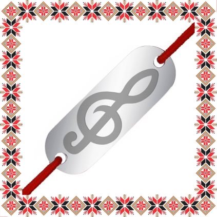 Martisor tip bratara reglabila cu pandantiv gravat cu cheia sol pe baza placuta ovala de inox de culoare argintie. Un martisor potrivit membrilor unei formatii muzicale sau orchestre, compozitorilor si tuturor celor ce iubesc muzica. Pandantivul este realizat din otel inoxidabil, un material rezistent ce nu isi modifica culoarea si aspectul in timp iar elasticul este de culoare rosie, aspect ce face din acest martisor un accesoriu extrem de versatil, usor de asortat mai multor tinute vestimentare. Dimensiunea bratarii se poate regla prin cele doua noduri culisante, fiind potrivita pentru diferite circumferinte ale mainii. Gravam cu bucurie martisoare special create pentru oamenii dragi din viata ta!
