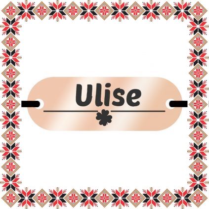 Bratara martisor personalizat prin gravarea pandantivului cu numele Ulise si trifoi norocos cu patru foi. Pandantivul - placuta ovala rose gold este realizata din otel inoxidabil, un material rezistent ce nu isi modifica culoarea si aspectul in timp iar elasticul este de culoare neagra, aspect ce face din acest martisor un cadou ideal ce poate fi purtat tot anul fiind un accesoriu extrem de versatil, usor de asortat mai multor tinute vestimentare. Dimensiunea bratarii se poate regla prin cele doua noduri culisante, fiind potrivita pentru diferite circumferinte ale mainii. Gravam cu bucurie martisoare special create pentru oamenii dragi din viata ta!