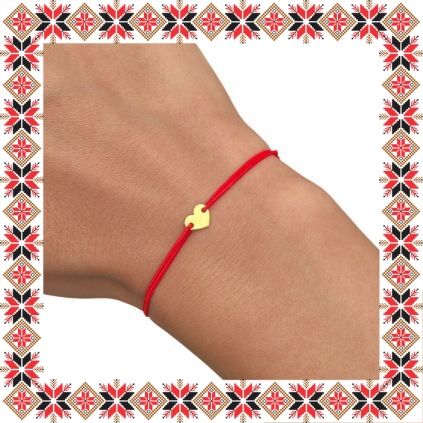 Martisor tip bratara cu pandantiv in forma de inimioara mica gravata cu trifoi cu patru foi, realizata din argint 925 placat cu aur de 24K si elastic de culoare rosie. Daruieste pretiozitate, sentimente si eleganta de martisor! Un cadou care o va si face sa straluceasca!