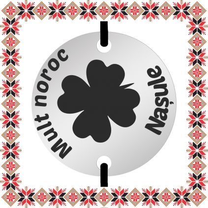 Martisor tip bratara reglabila cu pandantiv gravat cu trifoi cu patru foi si mesajul Mult Noroc Nasule, pe baza in forma de banut rotund de inox de culoare argintie. Pandantivul este realizat din otel inoxidabil, un material rezistent ce nu isi modifica culoarea si aspectul in timp iar elasticul este de culoare neagra, aspect ce face din acest martisor un accesoriu extrem de versatil, usor de asortat mai multor tinute vestimentare. Dimensiunea bratarii se poate regla prin cele doua noduri culisante, fiind potrivita pentru diferite circumferinte ale mainii. Gravam cu bucurie martisoare special create pentru oamenii dragi din viata ta!