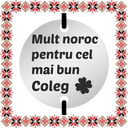 Martisor tip bratara reglabila cu pandantiv gravat cu trifoi cu patru foi si mesajul Mult noroc pentru cel mai bun coleg, pe baza in forma de banut rotund de inox de culoare argintie. Pandantivul este realizat din otel inoxidabil, un material rezistent ce nu isi modifica culoarea si aspectul in timp iar elasticul este de culoare neagra, aspect ce face din acest martisor un accesoriu extrem de versatil, usor de asortat mai multor tinute vestimentare. Dimensiunea bratarii se poate regla prin cele doua noduri culisante, fiind potrivita pentru diferite circumferinte ale mainii. Gravam cu bucurie martisoare special create pentru oamenii dragi din viata ta!