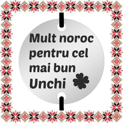 Martisor tip bratara reglabila cu pandantiv gravat cu trifoi cu patru foi si mesajul Mult noroc pentru cel mai bun unchi, pe baza in forma de banut rotund de inox de culoare argintie. Pandantivul este realizat din otel inoxidabil, un material rezistent ce nu isi modifica culoarea si aspectul in timp iar elasticul este de culoare neagra, aspect ce face din acest martisor un accesoriu extrem de versatil, usor de asortat mai multor tinute vestimentare. Dimensiunea bratarii se poate regla prin cele doua noduri culisante, fiind potrivita pentru diferite circumferinte ale mainii. Gravam cu bucurie martisoare special create pentru oamenii dragi din viata ta!