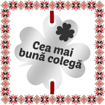Martisor tip bratara reglabila cu pandantiv gravat cu trifoi cu patru foi si mesajul Cea mai buna colega, pe baza in forma de trifoi de inox de culoare argintie. Pandantivul este realizat din otel inoxidabil, un material rezistent ce nu isi modifica culoarea si aspectul in timp iar elasticul este de culoare rosie. Dimensiunea bratarii se poate regla prin cele doua noduri culisante, fiind potrivita pentru diferite circumferinte ale mainii. Gravam cu bucurie martisoare special create pentru oamenii dragi din viata ta!