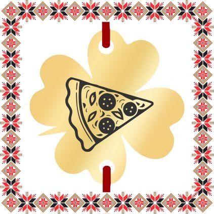 Martisor tip bratara reglabila cu pandantiv gravat cu o felie de pizza, pe baza in forma de trifoi de inox de culoare aurie. Un martisor potrivit celor care iubesc mancarea din Italia si nu refuza niciodata o pizza buna! Pandantivul este realizat din otel inoxidabil, un material rezistent ce nu isi modifica culoarea si aspectul in timp iar elasticul este de culoare rosie. Dimensiunea bratarii se poate regla prin cele doua noduri culisante, fiind potrivita pentru diferite circumferinte ale mainii. Gravam cu bucurie martisoare special create pentru oamenii dragi din viata ta!