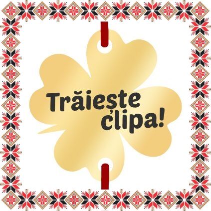 Martisor tip bratara reglabila cu pandantiv gravat cu mesajul Traieste clipa, pe baza in forma de trifoi de inox de culoare aurie. Un martisor potrivit atunci cand vrei sa ii reamintesti sa se bucure de fiecare moment pe care i-l ofera viata. Pandantivul este realizat din otel inoxidabil, un material rezistent ce nu isi modifica culoarea si aspectul in timp iar elasticul este de culoare rosie, aspect ce face din acest martisor un accesoriu extrem de versatil, usor de asortat mai multor tinute vestimentare. Dimensiunea bratarii se poate regla prin cele doua noduri culisante, fiind potrivita pentru diferite circumferinte ale mainii. Gravam cu bucurie martisoare special create pentru oamenii dragi din viata ta!