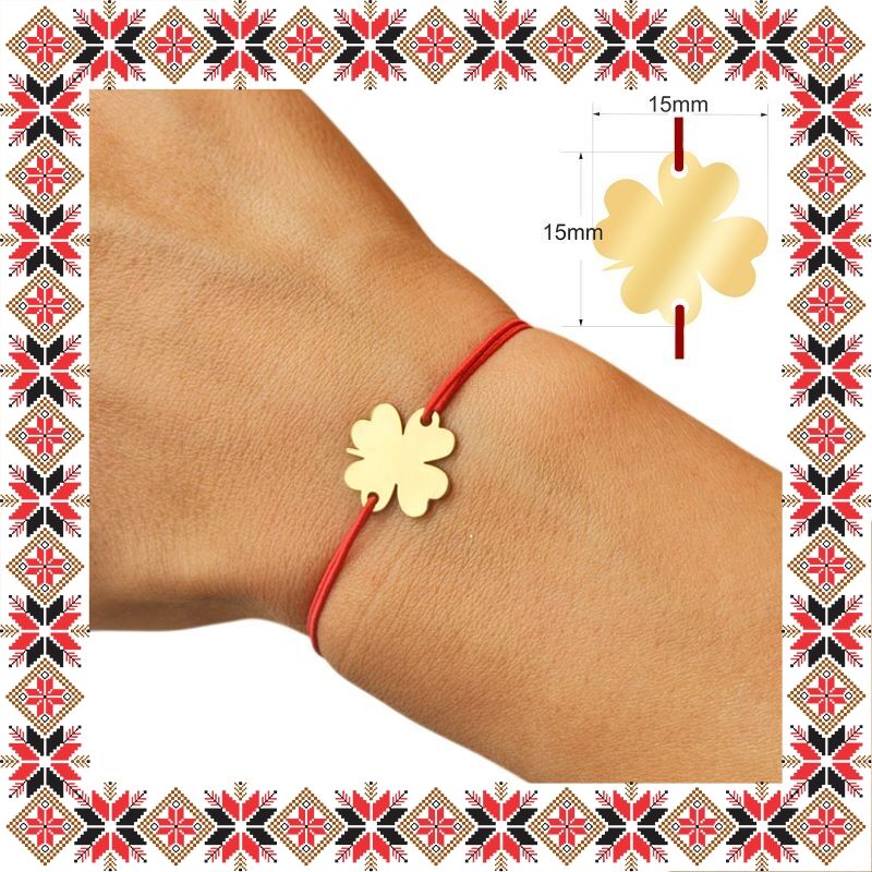 Martisor tip bratara reglabila cu pandantiv gravat cu un ghiocel elegant, pe baza in forma de trifoi de inox de culoare aurie. Un martisor ce simbolizeaza norocul si vesteste sosirea primaverii. Pandantivul este realizat din otel inoxidabil, un material rezistent ce nu isi modifica culoarea si aspectul in timp iar elasticul este de culoare rosie. Dimensiunea bratarii se poate regla prin cele doua noduri culisante, fiind potrivita pentru diferite circumferinte ale mainii. Gravam cu bucurie martisoare special create pentru oamenii dragi din viata ta!