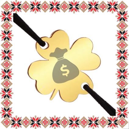 Martisor tip bratara reglabila cu pandantiv gravat cu sac cu bani, pe baza in forma de trifoi de inox de culoare aurie. Un martisor purtator de noroc si prosperitate. Pandantivul este realizat din otel inoxidabil, un material rezistent ce nu isi modifica culoarea si aspectul in timp. Dimensiunea bratarii se poate regla prin cele doua noduri culisante, fiind potrivita pentru diferite circumferinte ale mainii. Gravam cu bucurie martisoare special create pentru oamenii dragi din viata ta!