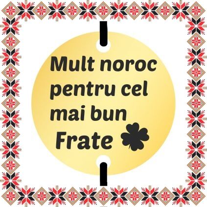 Martisor tip bratara reglabila cu pandantiv gravat cu trifoi cu patru foi si mesajul Mult noroc pentru cel mai bun frate, pe baza in forma de banut rotund de inox de culoare aurie. Pandantivul este realizat din otel inoxidabil, un material rezistent ce nu isi modifica culoarea si aspectul in timp iar elasticul este de culoare neagra, aspect ce face din acest martisor un accesoriu extrem de versatil, usor de asortat mai multor tinute vestimentare. Dimensiunea bratarii se poate regla prin cele doua noduri culisante, fiind potrivita pentru diferite circumferinte ale mainii. Gravam cu bucurie martisoare special create pentru oamenii dragi din viata ta!