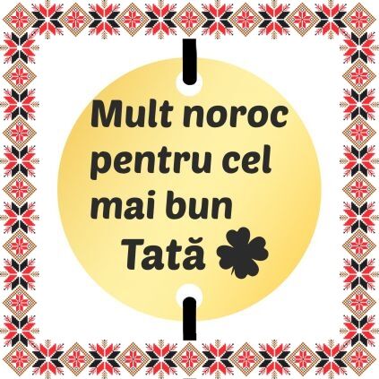 Martisor tip bratara reglabila cu pandantiv gravat cu trifoi cu patru foi si mesajul Mult Noroc pentru cel mai bun tata, pe baza in forma de banut rotund de inox de culoare aurie. Pandantivul este realizat din otel inoxidabil, un material rezistent ce nu isi modifica culoarea si aspectul in timp iar elasticul este de culoare neagra, aspect ce face din acest martisor un accesoriu extrem de versatil, usor de asortat mai multor tinute vestimentare. Dimensiunea bratarii se poate regla prin cele doua noduri culisante, fiind potrivita pentru diferite circumferinte ale mainii. Gravam cu bucurie martisoare special create pentru oamenii dragi din viata ta!
