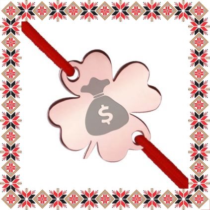 Martisor tip bratara reglabila cu pandantiv gravat cu sac si simbolul monedei dolar, pe baza in forma de trifoi de inox de culoare rose gold. Un martisor care vorbeste despre noroc, prosperitate si bogatie. Pandantivul este realizat din otel inoxidabil, un material rezistent ce nu isi modifica culoarea si aspectul in timp iar elasticul este de culoare rosie. Dimensiunea bratarii se poate regla prin cele doua noduri culisante, fiind potrivita pentru diferite circumferinte ale mainii. Gravam cu bucurie martisoare special create pentru oamenii dragi din viata ta!