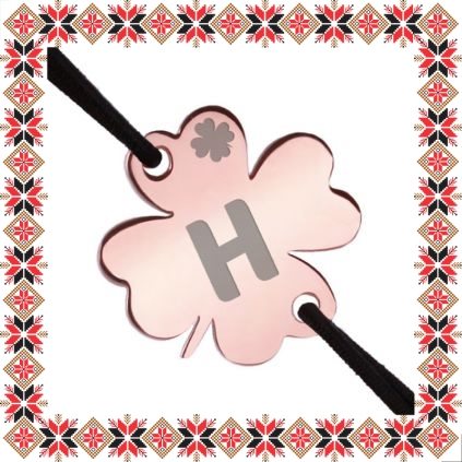 Martisor tip bratara reglabila cu pandantiv gravat cu trifoi cu patru foi si litera H, pe baza in forma de trifoi de inox de culoare rose gold. Fie ca litera inseamna ceva pentru voi fie ca este initiala numelui lui, martisorul va aduce zambete. Pandantivul este realizat din otel inoxidabil, un material rezistent ce nu isi modifica culoarea si aspectul in timp iar elasticul este de culoare rosie, aspect ce face din acest martisor un accesoriu extrem de versatil, usor de asortat mai multor tinute vestimentare. Dimensiunea bratarii se poate regla prin cele doua noduri culisante, fiind potrivita pentru diferite circumferinte ale mainii. Gravam cu bucurie martisoare special create pentru oamenii dragi din viata ta!