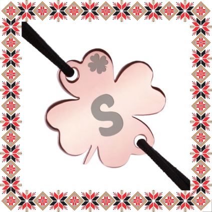 Martisor tip bratara reglabila cu pandantiv gravat cu trifoi cu patru foi si litera S pe baza in forma de trifoi de inox de culoare rose gold. Fie ca litera inseamna ceva pentru voi fie ca este initiala numelui lui, martisorul va aduce zambete. Pandantivul este realizat din otel inoxidabil, un material rezistent ce nu isi modifica culoarea si aspectul in timp. Dimensiunea bratarii se poate regla prin cele doua noduri culisante, fiind potrivita pentru diferite circumferinte ale mainii. Gravam cu bucurie martisoare special create pentru oamenii dragi din viata ta!