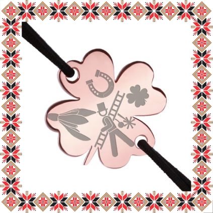 Martisor tip bratara reglabila cu pandantiv gravat cu trifoi cu patru foi, ghiocel, potcoava si ghiocel, pe baza in forma de trifoi de inox de culoare rose gold. Pandantivul este realizat din otel inoxidabil, un material rezistent ce nu isi modifica culoarea si aspectul in timp iar elasticul este de culoare rosie, aspect ce face din acest martisor un accesoriu extrem de versatil, usor de asortat mai multor tinute vestimentare. Dimensiunea bratarii se poate regla prin cele doua noduri culisante, fiind potrivita pentru diferite circumferinte ale mainii. Gravam cu bucurie martisoare special create pentru oamenii dragi din viata ta!