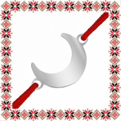 Martisor tip bratara cu pandantiv reprezentand o semiluna, realizata din otel inoxidabil de culoare argintie si elastic de culoare rosie. Pandantivul este realizat din otel inoxidabil, un material rezistent ce nu isi modifica culoarea si aspectul in timp iar elasticul este de culoare rosie. Dimensiunea bratarii se poate regla prin cele doua noduri culisante, fiind potrivita pentru diferite circumferinte ale mainii.