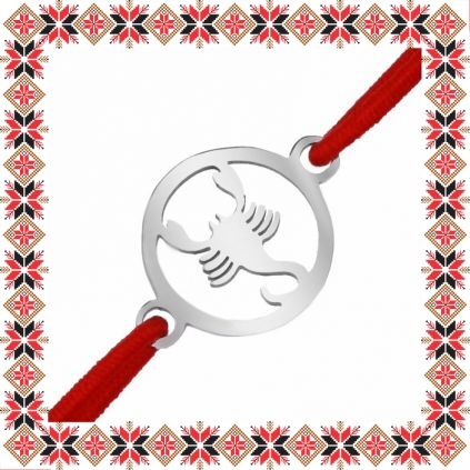 Martisor tip bratara cu pandantiv in forma de cerc cu simbolul zodiei scorpion, realizata din otel inoxidabil de culoare argintie si elastic de culoare rosie. Pandantivul este realizat din otel inoxidabil, un material rezistent ce nu isi modifica culoarea si aspectul in timp iar elasticul este de culoare rosie. Dimensiunea bratarii se poate regla prin cele doua noduri culisante, fiind potrivita pentru diferite circumferinte ale mainii.