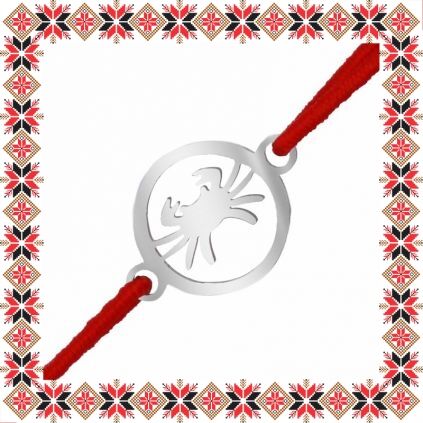 Martisor tip bratara cu pandantiv in forma de cerc cu simbolul zodiei rac, realizata din otel inoxidabil de culoare argintie si elastic de culoare rosie. Pandantivul este realizat din otel inoxidabil, un material rezistent ce nu isi modifica culoarea si aspectul in timp iar elasticul este de culoare rosie. Dimensiunea bratarii se poate regla prin cele doua noduri culisante, fiind potrivita pentru diferite circumferinte ale mainii.