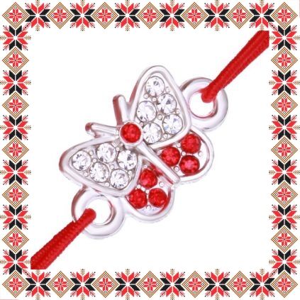 Martisor Bratara Argintie Fluture Pietre Alb Rosu
