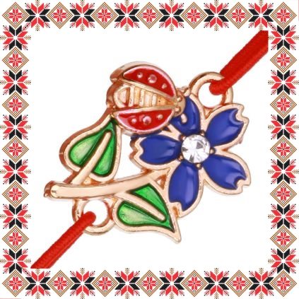 Martisor tip bratara cu pandantiv in forma de floare de Nu-ma-uita cu gargarita, realizat din email de diferite culori, pietricica multifatetata transparenta pe baza metalica aurie si elastic de culoare rosie. Daruieste martisoare cu semnificatie odata cu venirea primaverii!