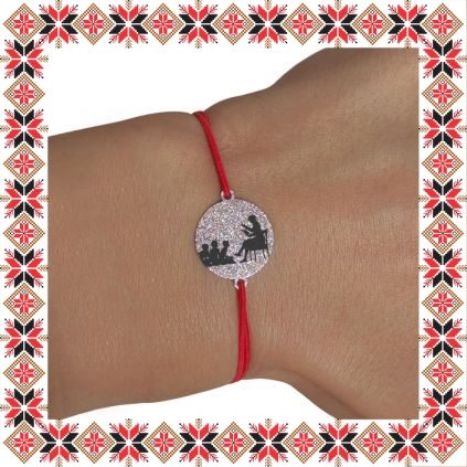 Bratara martisor cu pandantiv realizat din inox argintiu in forma de banut norocos, cu efect praf de stele stralucitor pe o parte si oglinda pe verso. Personalizata prin gravura cu doamna profesoara si elevii ei. Dimensiunea bratarii se poate regla prin cele doua noduri culisante, fiind potrivita pentru diferite circumferinte ale mainii. Gravam cu bucurie martisoare cu personalitate, special create pentru oamenii dragi din viata ta!