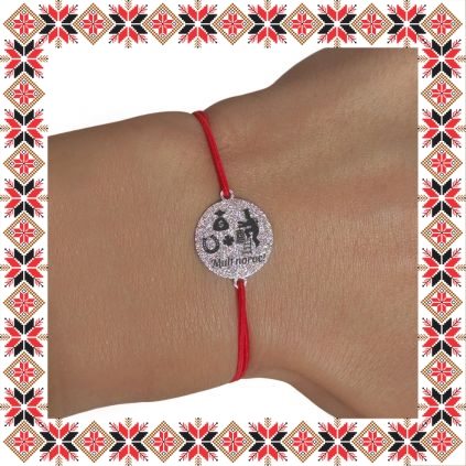 Bratara martisor cu pandantiv realizat din inox argintiu in forma de banut norocos, cu efect praf de stele stralucitor pe o parte si oglinda pe verso. Personalizata prin gravura cu potcoava, cosar, trifoi, bani si mesajul Mult noroc. Dimensiunea bratarii se poate regla prin cele doua noduri culisante, fiind potrivita pentru diferite circumferinte ale mainii. Gravam cu bucurie martisoare cu personalitate, special create pentru oamenii dragi din viata ta!