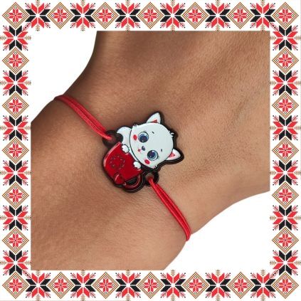 Martisor tip bratara cu pandantiv in forma de pisicuta simpatica intr-un buzunar, pentru un strop de rasfat si copilarie. Martisoarele tematice au devenit in ultimii ani extrem de populare si reprezinta un accesoriu prin care purtatorii isi pot manifesta sentimentele si isi pot expune lumii, personalitatea, pasiunile si preferintele. Martisoarele colorate au un aspect prietenos si calduros, ceea ce le face extrem de versatile si usor de asortat mai multor tinute vestimentare. Daruieste martisoare cu personalitate persoanelor dragi din viata ta!