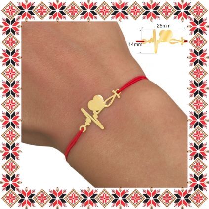 Martisor bratara cu pandantiv in forma de stetoscop cu ritm cardiac si inima pentru cadre medicale. Pandantiv realizat din inox acoperit PVD cu aur de 18K personalizat cu initiala V. Daruieste martisoare deosebite, personalizate special pentru oamenii pe care ii iubesti, pe care ii admiri, celor carora vrei sa le multumesti si celor carora vrei sa le daruiesti un gand bun odata cu venirea primaverii! Opteaza pentru un martisor realizat din otel inoxidabil pentru ca primitoarea sa il poata purta tot anul.