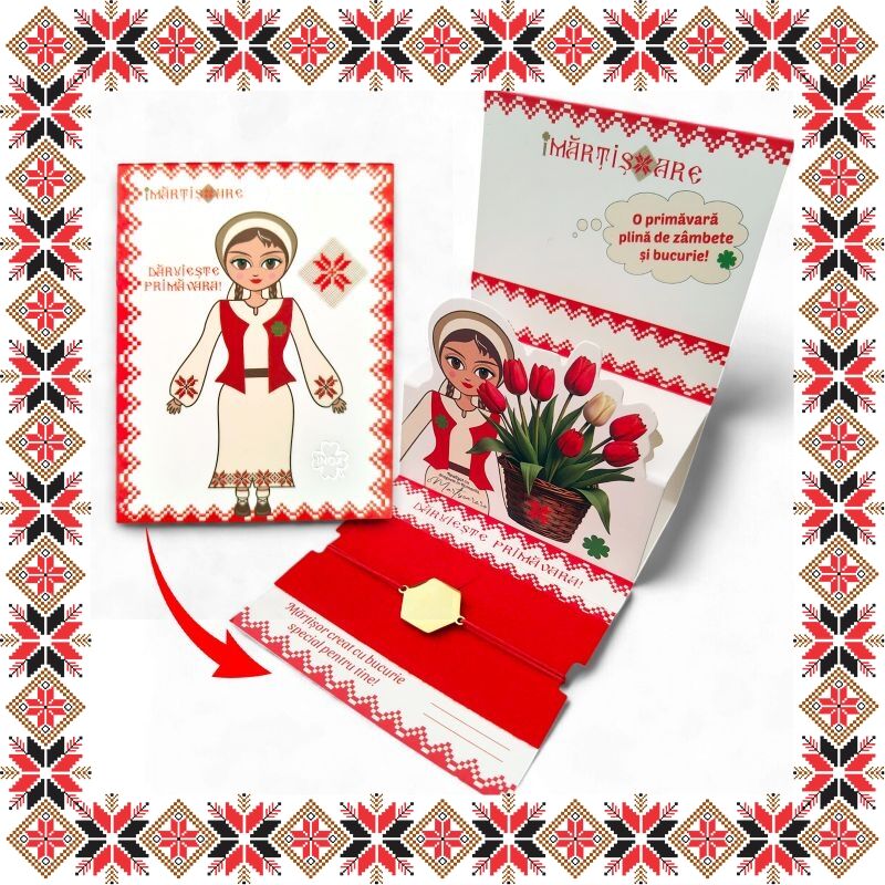 CADOU! Martisorul este insotit de snur de martisor, il vei primi ambalat elegant si vei primi pentru el si plic cu design inspirat din traditia romaneasca!