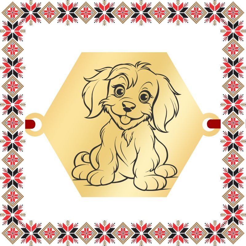 Martisor bratara cu pandantiv hexagon creat pentru iubitoarele de animale. Realizat din inox acoperit PVD cu aur si personalizat prin gravura laser cu cel mai simpatic catel. Opteaza pentru un martisor realizat din otel inoxidabil pentru ca primitoarea sa il poata purta tot anul.