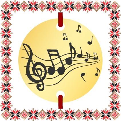 Martisor ambalat pe suport de carton de culoare bej in forma de costum popular romanesc cu motive traditionale. Plic de hartie imprimat cu motive traditionale romanesti CADOU!
