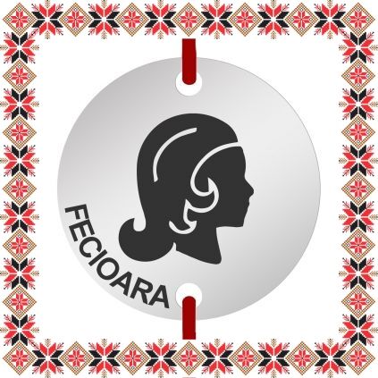 Martisor ambalat pe suport de carton de culoare bej in forma de costum popular romanesc cu motive traditionale. Plic de hartie imprimat cu motive traditionale romanesti CADOU!
