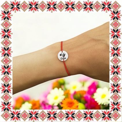 Bratara martisor cu pandantiv in forma de banut de culoare argintie gravat cu ghiocel si numele ei, Sonia. Otelul inoxidabil cunoscut si ca inox este un material mai dur decat argintul ceea ce il face mai rezistent in timp. Ofera un martisor discret ce se preteaza a fi purtat to anul! Daruieste martisoare personalizate!