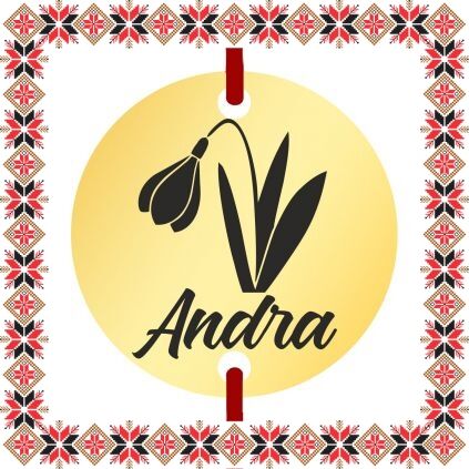 Bratara martisor cu pandantiv in forma de banut de culoare aurie gravat cu ghiocel si numele ei, Andra. Otelul inoxidabil cunoscut si ca inox este un material mai dur decat argintul ceea ce il face mai rezistent in timp. Ofera un martisor discret ce se preteaza a fi purtat to anul! Daruieste martisoare personalizate!