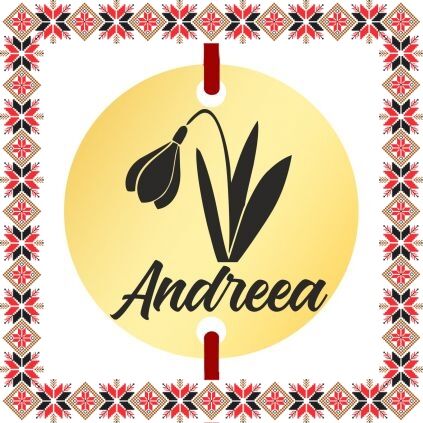Bratara martisor cu pandantiv in forma de banut de culoare aurie gravat cu ghiocel si numele ei, Andreea. Otelul inoxidabil cunoscut si ca inox este un material mai dur decat argintul ceea ce il face mai rezistent in timp. Ofera un martisor discret ce se preteaza a fi purtat to anul! Daruieste martisoare personalizate!