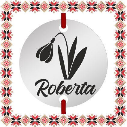 Bratara martisor cu pandantiv in forma de banut de culoare argintie gravat cu ghiocel si numele ei, Roberta. Otelul inoxidabil cunoscut si ca inox este un material mai dur decat argintul ceea ce il face mai rezistent in timp. Ofera un martisor discret ce se preteaza a fi purtat to anul! Daruieste martisoare personalizate!