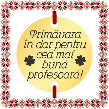 Bratara martisor cu pandantiv in forma de banut de culoare aurie realizata din otel inoxidabil si snur din material textil de culoare rosie. Martisor gravat cu mesaj de martisor pentru doamna profesoara: Primavara in dar pentru cea mai buna profesoara! Otelul inoxidabil cunoscut si ca inox este un material mai dur decat argintul ceea ce il face mai rezistent in timp. Ofera un martisor discret ce se preteaza a fi purtat to anul! Daruieste martisoare personalizate!