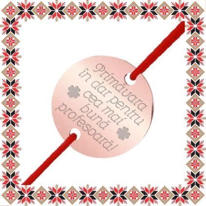 Bratara martisor cu pandantiv in forma de banut de culoare rose gold realizata din otel inoxidabil si snur din material textil de culoare rosie. Martisor gravat cu mesaj de martisor pentru doamna profesoara: Primavara in dar pentru cea mai buna profesoara! Otelul inoxidabil cunoscut si ca inox este un material mai dur decat argintul ceea ce il face mai rezistent in timp. Ofera un martisor discret ce se preteaza a fi purtat to anul! Daruieste martisoare personalizate!
