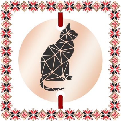 Martisor ambalat pe suport de carton de culoare bej in forma de costum popular romanesc cu motive traditionale. Plic de hartie imprimat cu motive traditionale romanesti CADOU!