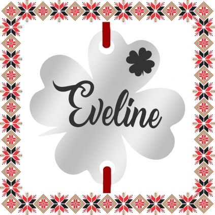 Bratara martisor cu pandantiv in forma de trifoi cu patru foi de culoare argintie gravat cu trifoi si numele ei, Eveline. Otelul inoxidabil cunoscut si ca inox este un material mai dur decat argintul ceea ce il face mai rezistent in timp. Ofera un martisor norocos ce se preteaza a fi purtat to anul! Daruieste martisoare personalizate!