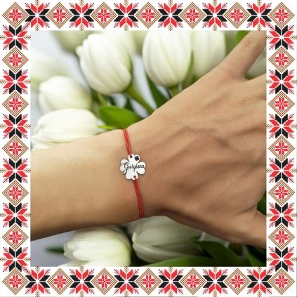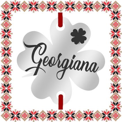 Bratara martisor cu pandantiv in forma de trifoi cu patru foi de culoare argintie gravat cu trifoi si numele ei, Georgiana. Otelul inoxidabil cunoscut si ca inox este un material mai dur decat argintul ceea ce il face mai rezistent in timp. Ofera un martisor norocos ce se preteaza a fi purtat to anul! Daruieste martisoare personalizate!