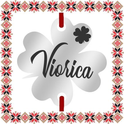 Bratara martisor cu pandantiv in forma de trifoi cu patru foi de culoare argintie gravat cu trifoi si numele ei, Viorica. Otelul inoxidabil cunoscut si ca inox este un material mai dur decat argintul ceea ce il face mai rezistent in timp. Ofera un martisor norocos ce se preteaza a fi purtat to anul! Daruieste martisoare personalizate!