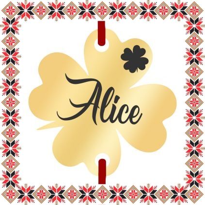 Bratara martisor cu pandantiv in forma de trifoi cu patru foi de culoare aurie gravat cu trifoi si numele ei, Alice. Ofera un martisor norocos ce se preteaza a fi purtat to anul! Daruieste martisoare personalizate!