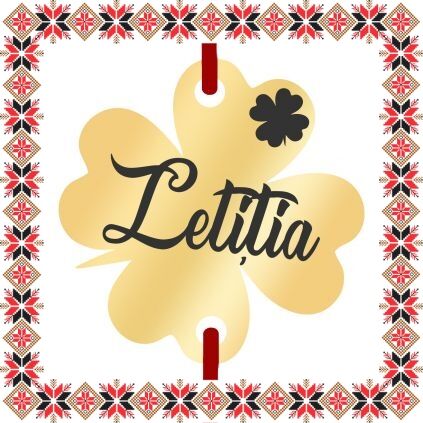 Bratara martisor cu pandantiv in forma de trifoi cu patru foi de culoare aurie gravat cu trifoi si numele ei, Letitia. Ofera un martisor norocos ce se preteaza a fi purtat to anul! Daruieste martisoare personalizate!