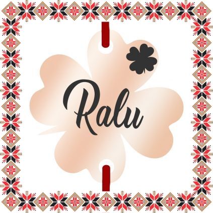 Bratara martisor cu pandantiv din inox in forma de trifoi cu patru foi de culoare rose gold gravat cu trifoi si numele ei, Ralu. Ofera un martisor norocos ce se preteaza a fi purtat to anul! Daruieste martisoare personalizate!