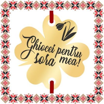 Bratara martisor cu pandantiv din inox in forma de trifoi cu patru foi de culoare aurie gravat cu ghiocel si mesajul Ghiocei pentru sora mea! Daruieste martisoare personalizate!